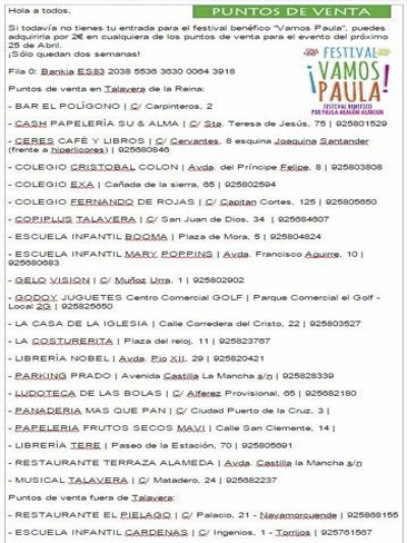 Festival benéfico destinado a recaudar fondos para el tratamiento de Paula.