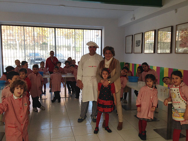 La concejal de Educación, María Victoria González Vilches, ayer acompañó a los alumnos de Primero de Primaria del colegio Fernando de Rojas de Talavera de la Reina en el taller de cocina en el que han participado dentro de la oferta educativa del Ayuntamiento de Talavera.