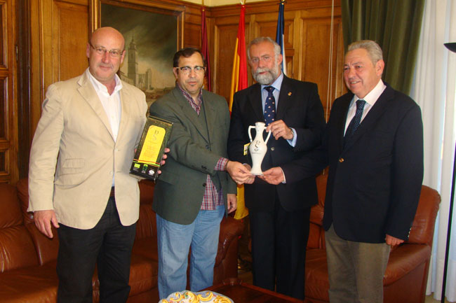 Javier López, director de la empresa Señorío de Santa Olalla, ha presentado al Ayuntamiento de Talavera de la Reina, el nuevo aceite que ha sacado al mercado "Del Serrallo" que se presenta en un ánfora de cerámica diseñada por el ceramista Ángel Núñez.