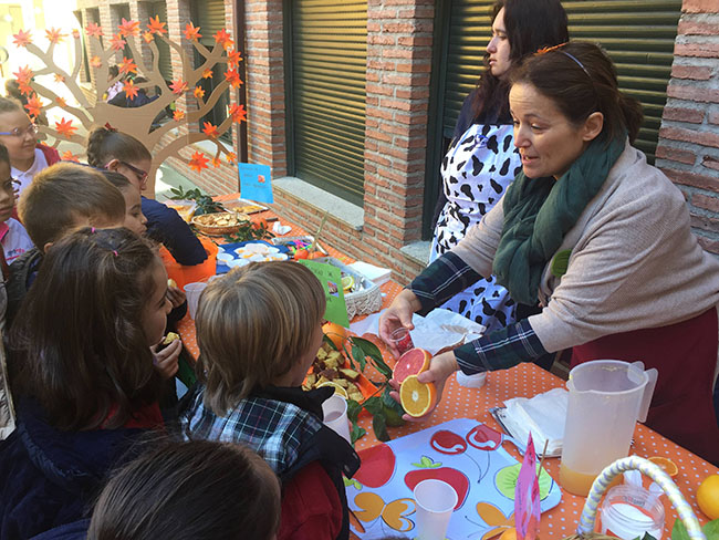 Este año , el AMPA del centro , que es la que promueve este evento, además de su mercadillo de frutos de otoño ( castañas, naranjas, mandarinas, nueces,avellanas...) donde los alumnos pueden adquirirlos, ha apostado por una fiesta degustación, no sólo de frutos de la temporada sino de productos elaborados con los mismos, todo ello amenizado por las canciones alusivas al tema aprendidas en clases.