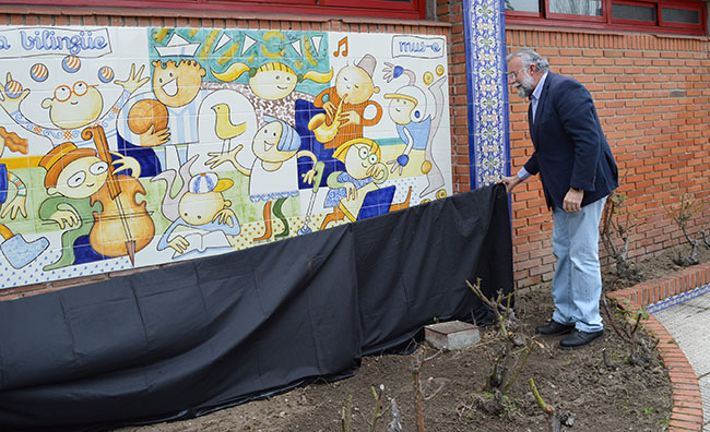 Ramos ha agradecido la invitación del director del colegio, Juan José Carretero, quien además ha pedido al alcalde que descubriera un panel cerámico que desde hoy decora la entrada del colegio talaverano "representando los valores del colegio".