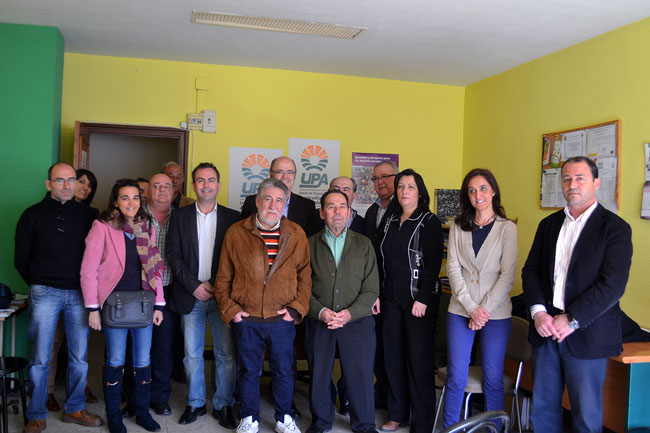 El candidato a la alcaldía por el Partido Socialista, Javier Corrochano, se ha reúnido con agricultores y ganaderos junto a la secretaria provincial de UPA, Elisa Fernández, y el diputado nacional Alejandro Alonso.