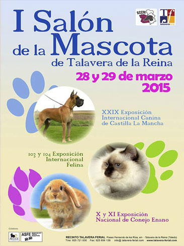 Este sábado día 28 de marzo Talavera Ferial abre sus puertas para el desarrollo del I Salón de la Mascota. Cerca de 1.500 ejemplares de animales representativos de nuestras más populares mascotas, como son los perros y gatos además de conejos y algún otro exótico, nos harán disfrutar en un certamen que se celebra por primera vez con estas características en Talavera de la Reina.