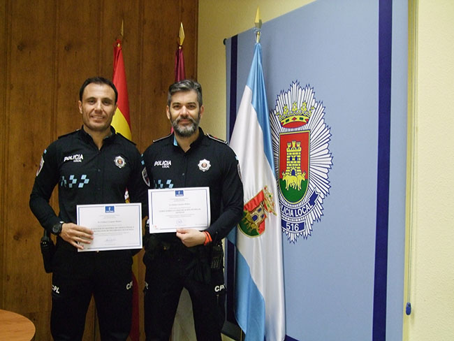 Dos miembros de la Policía Local, han recibido en la Escuela de Protección Ciudadana de Castilla la Mancha, los Distintivos de Especialistas en Seguridad Vial.