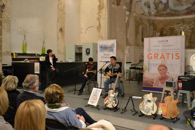 El acto lo inauguró Pilar Campillejo y posteriormente Luis Martín presentó a Tex Mex y Carmen Loba, sus dos guitarras de cerámica realizadas por el ceramista talaverano Manuel Carrillo y el luthier Carlos Sabrafén.