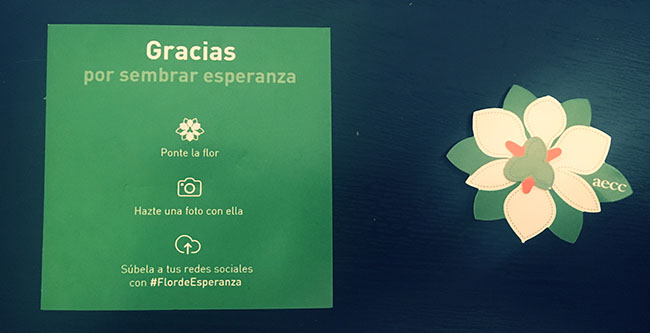 Con cada donativo una flor de Iris Blanco, flor elegida por su significado, esperanza, para dar ánimos a los pacientes de cáncer y sus familias.